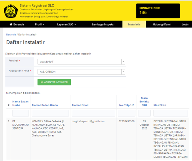 PT. Mugirahayu Sentosa Terdaftar sebagai instalatir Direktorat Teknik dan Lingkungan Ketenagalistrikan Direktorat Jenderal Ketenagalistrikan Kementerian Energi dan Sumber Daya Mineral
